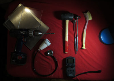 Creating a sound library for composition and post-production use. 80 sound elements obtained by recording doors, stairsteps, wood, vegetables, straw, plastic, foam, polystyrene, bread, leather….Captured by directional & piezoelectric microphones.