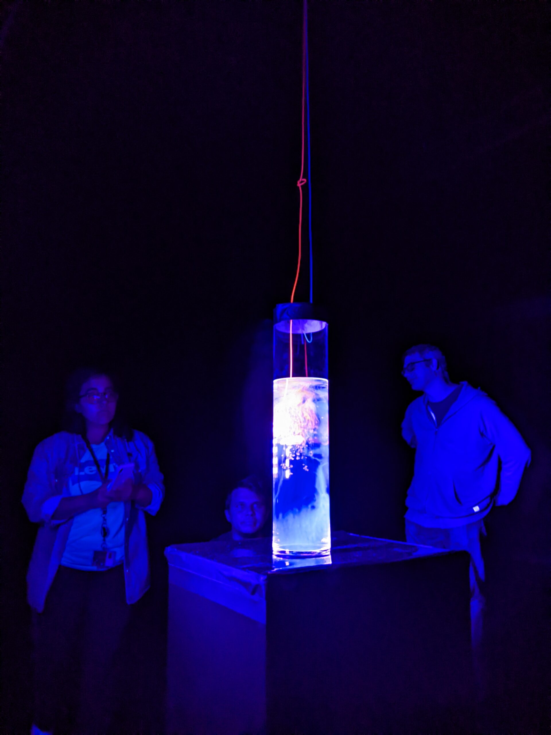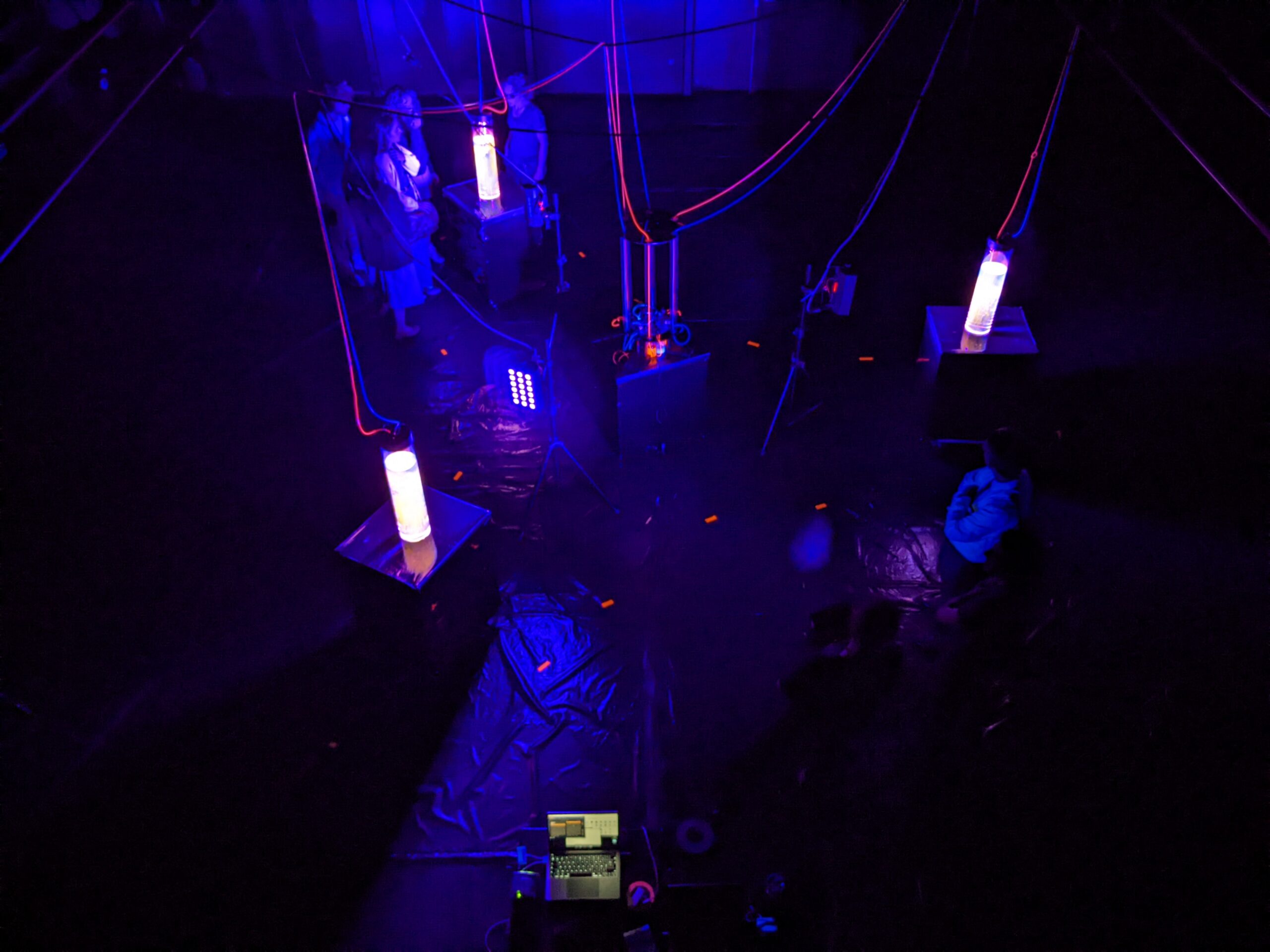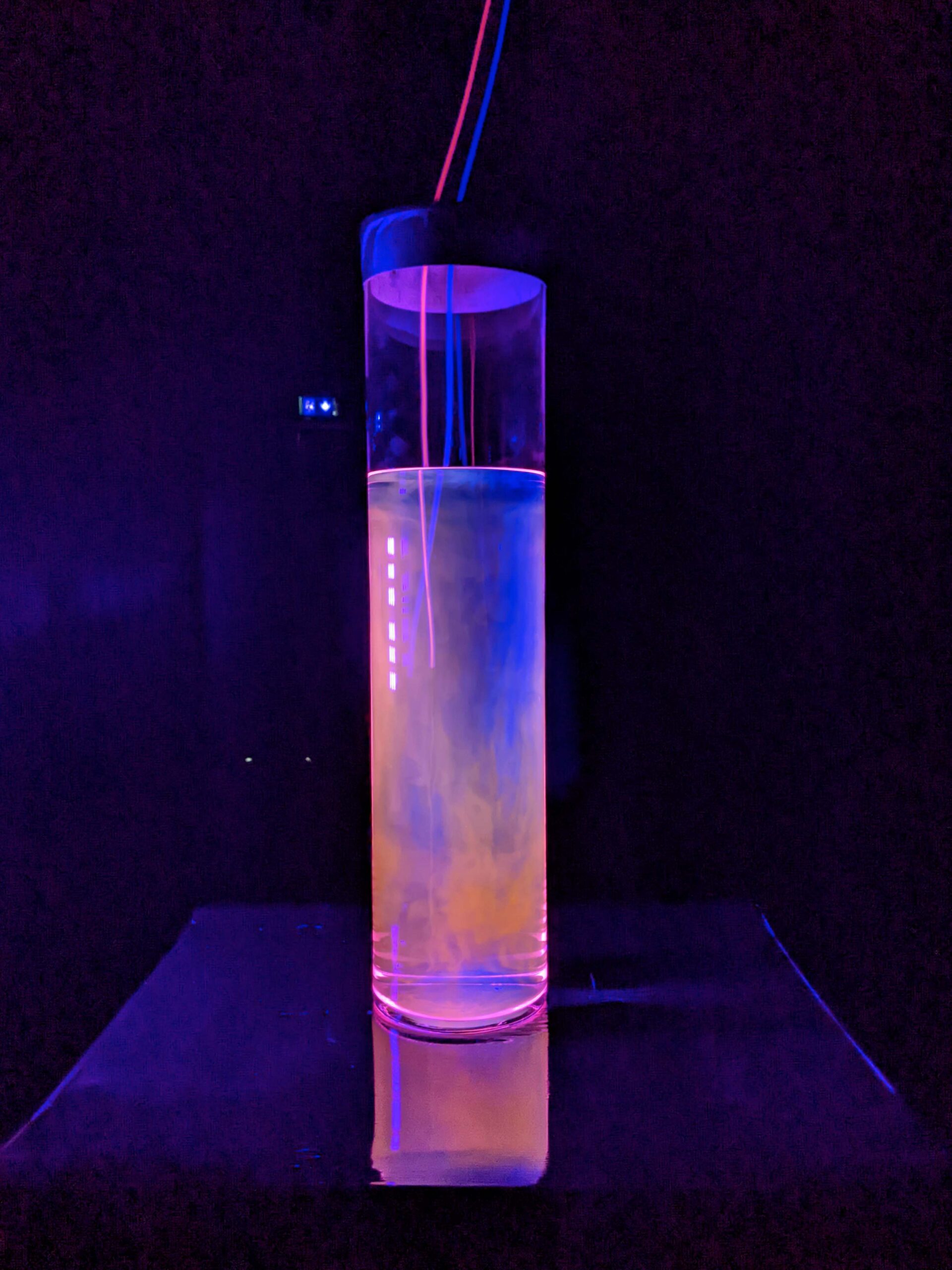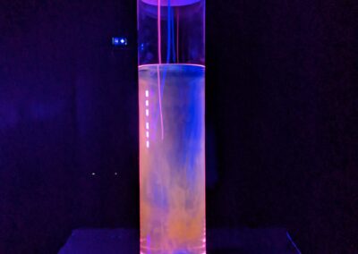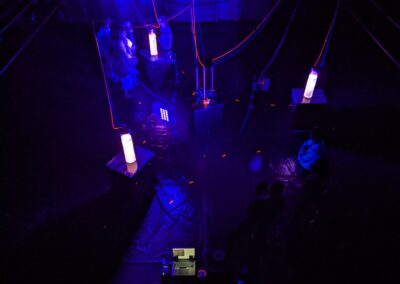 The idea was to create a dystopian and mysterious atmosphere, where the luminescent liquids would evolve like aquatic creatures.